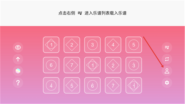 1、啟動(dòng)光遇樂(lè)譜App,進(jìn)入時(shí)點(diǎn)擊右側(cè)人像的按鈕。