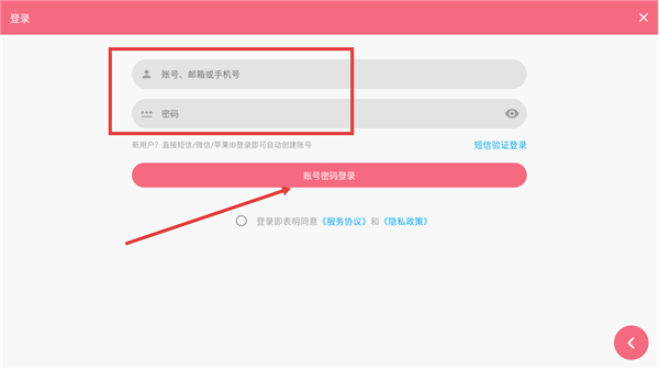 3、輸入手機(jī)號(hào)、密碼后,點(diǎn)擊賬號(hào)密碼登錄的按鈕即可。