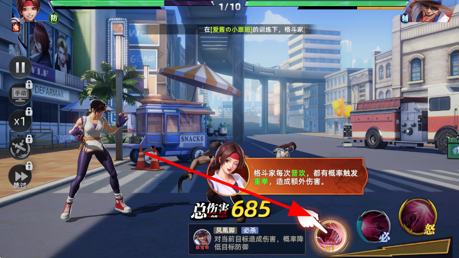 2、劇情冒險挑戰(zhàn):新人玩家將跟隨拳皇世界觀推進主線劇情,在各區(qū)域與不同對手展開對決,揭開格斗之城背后隱藏的秘密與陰謀。