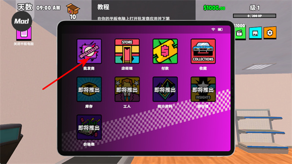 2、點(diǎn)擊平板上的批發(fā)商圖標(biāo),進(jìn)入批發(fā)商界面,在此可采購商品,為店鋪備貨提供了資源的支持。