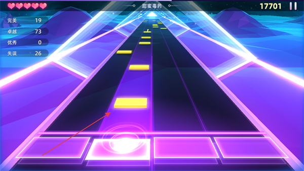 4、持續(xù)點(diǎn)擊音符,保持節(jié)奏,盡量減少失誤次數(shù),完成整首歌曲演奏獲取最終分?jǐn)?shù)。