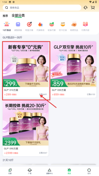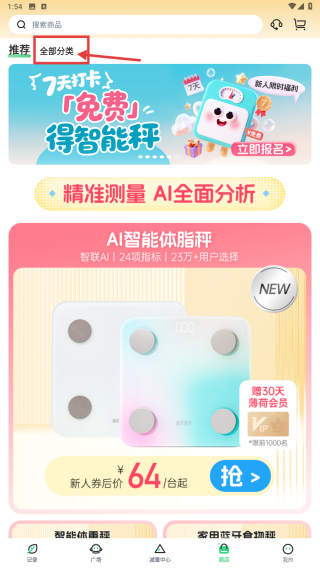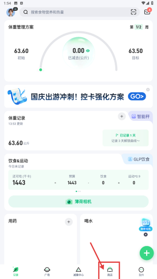 1、打開(kāi)體重管理類(lèi)應(yīng)用,點(diǎn)擊底部商品選項(xiàng),進(jìn)入商品商城頁(yè)面。