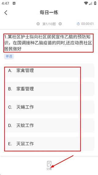 3、在完成題目作答后,點擊交卷,查看每日一練成績結(jié)果。
