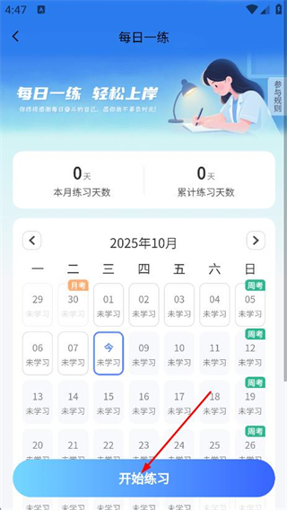 2、在每日一練頁面,點擊開始練習(xí),進入練習(xí)答題頁面。
