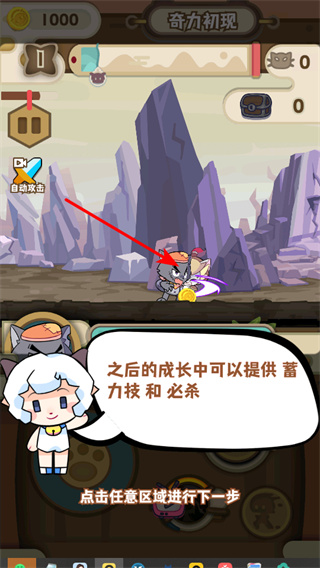 2、進入奇力初現(xiàn)子關(guān)卡,該關(guān)卡是初入奇貓國的首個子關(guān)卡,通過此關(guān)卡可熟悉奇力系統(tǒng)。