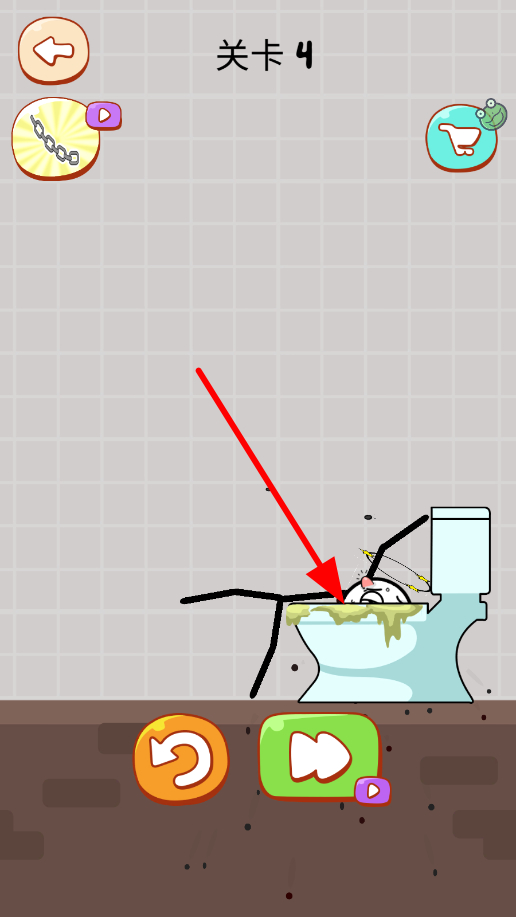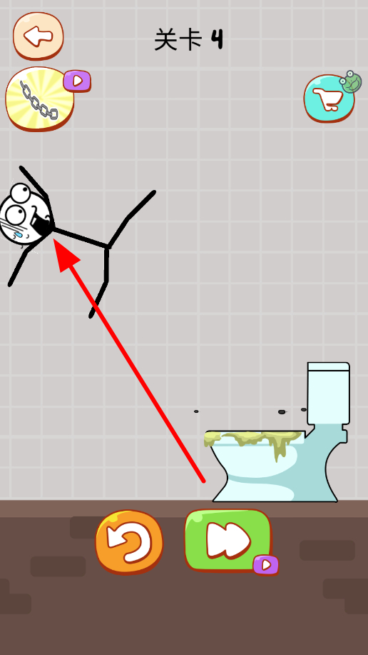 3、根據(jù)關卡要求,通過長按移動操作,精準地把火柴人移動到馬桶處,使其進入馬桶,完成這一關鍵通關步驟。