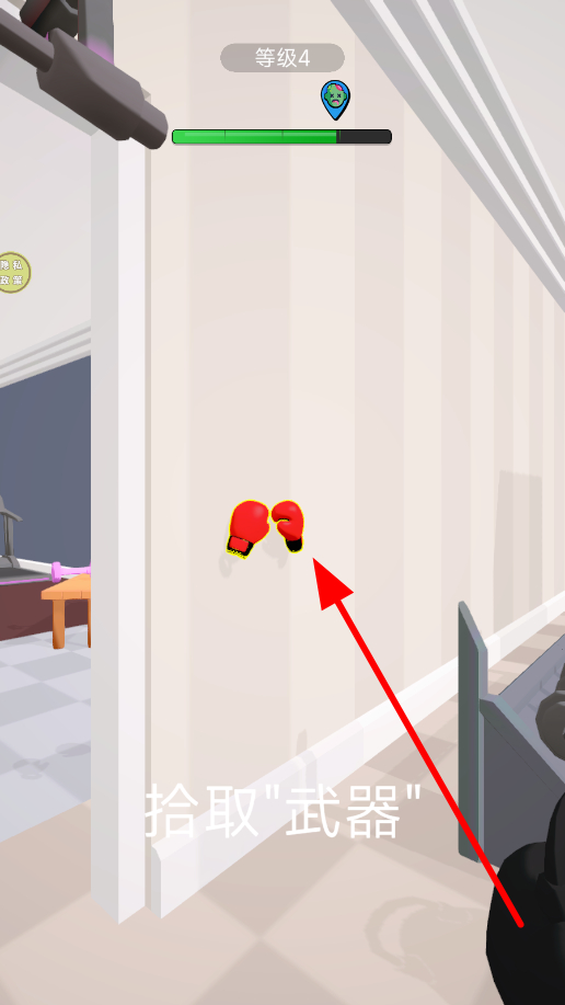2、拾取武器要留意場(chǎng)景中出現(xiàn)的武器,靠近后進(jìn)行操作,獲取拳套武器,不同武器有不同的攻擊效果。