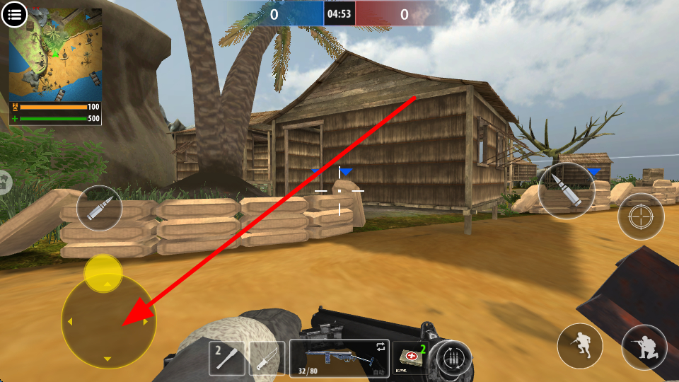 2、滑動移動操作需保持靈活,利用場景中的掩體,比如房屋、沙袋等,不斷變換位置,讓敵人難以鎖定自身位置。