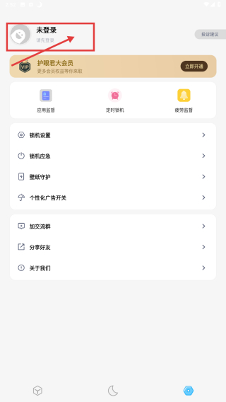 1、打開護眼類應(yīng)用,點擊底部設(shè)置選項,進入設(shè)置頁面。