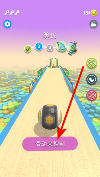 1、進(jìn)入游戲后,按照提示滑動(dòng)屏幕來控制球體在賽道上的移動(dòng)方向,讓球體能夠順利在賽道上前行,避開掉落風(fēng)險(xiǎn),朝著目標(biāo)前進(jìn)。