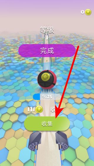 3、當(dāng)完成當(dāng)前關(guān)卡的行駛后,會(huì)出現(xiàn)收集按鈕,點(diǎn)擊該按鈕,就能收集關(guān)卡獎(jiǎng)勵(lì),這些獎(jiǎng)勵(lì)可助力球體或關(guān)卡的升級(jí)等操作。