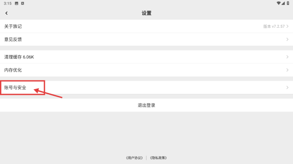 3、在設(shè)置頁面,點(diǎn)擊賬號(hào)與安全選項(xiàng),進(jìn)入賬號(hào)管理頁面。