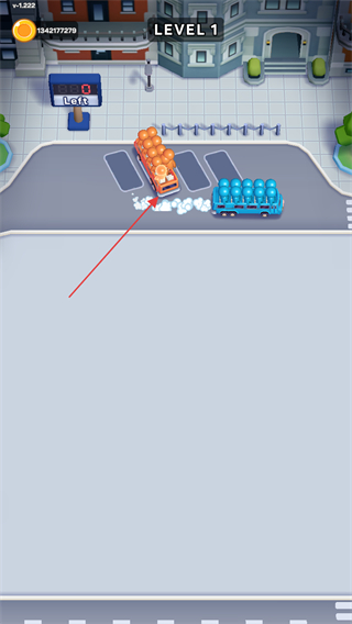 1、進入游戲第1關(guān),觀察屏幕上彩色巴士分布及道路旁排隊乘客,留意左上角金幣數(shù)和時間倒計時。