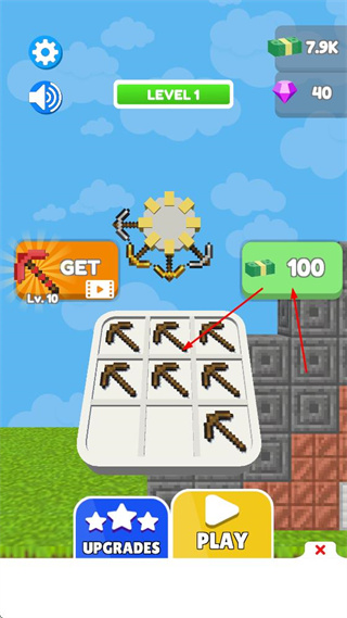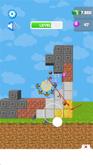 2、點擊PLAY按鈕進入挖礦關(guān)卡,操控帶有鎬頭的裝置,對由方塊組成的結(jié)構(gòu)進行挖掘。挖掘過程中,會獲得金錢獎勵。
