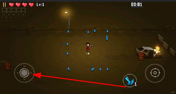 1、通過左側(cè)的操控按鈕,控制角色在場(chǎng)景中移動(dòng),躲避僵尸的同時(shí),尋找合適的射擊位置。