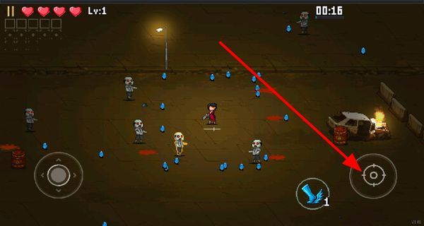 2、玩家可以點(diǎn)擊右側(cè)的射擊方向按鈕,瞄準(zhǔn)周圍的僵尸,發(fā)起射擊,消滅來襲的敵人。