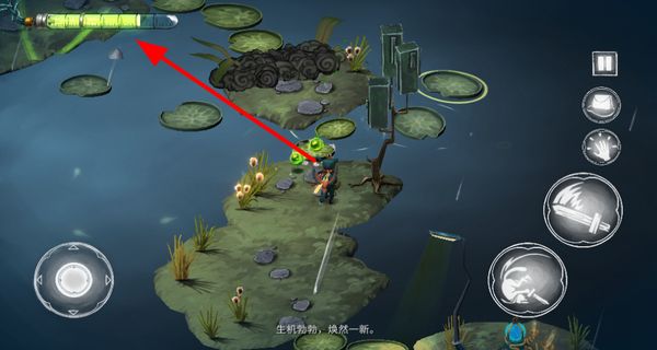 3、在被照亮的場景中尋找綠色果實(shí),拾取后可獲取能量,為角色補(bǔ)充體力等。