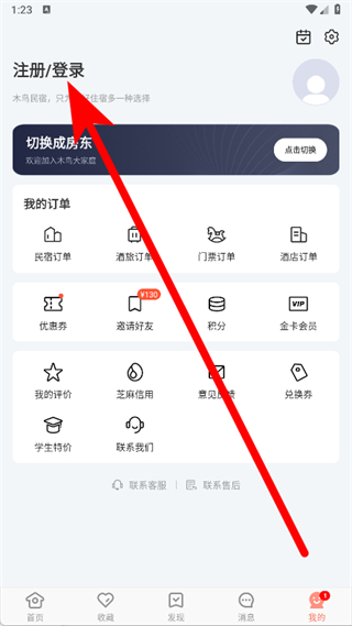 3、在我的頁(yè)面,點(diǎn)擊左上角的注冊(cè)登錄選項(xiàng),進(jìn)入登錄頁(yè)面。