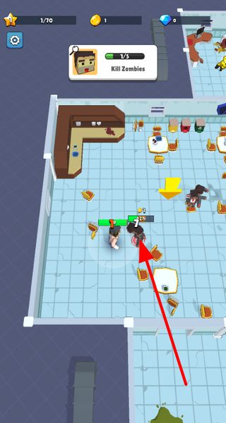 1、在游戲中,通過滑動屏幕來控制角色移動,能在不同區(qū)域間穿梭,尋找僵尸和任務(wù)目標。