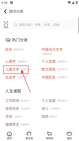 2、在圖書(shū)分類頁(yè)面,選擇兒童文學(xué)分類,進(jìn)入兒童文學(xué)圖書(shū)頁(yè)面。