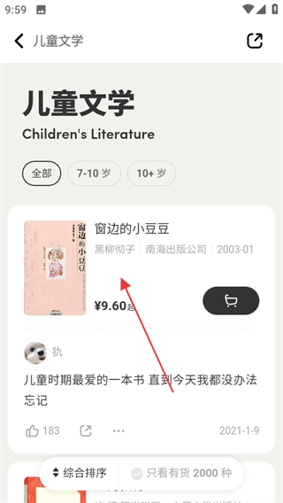 3、在兒童文學(xué)圖書(shū)頁(yè)面,選擇想要的圖書(shū),如窗邊的小豆豆,進(jìn)入該圖書(shū)詳情頁(yè)面。