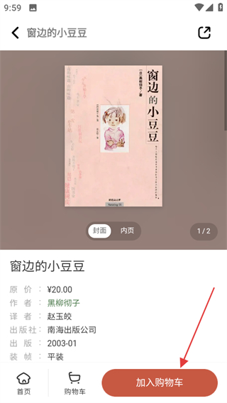 4、在圖書(shū)詳情頁(yè)面,若想購(gòu)買(mǎi)該圖書(shū),點(diǎn)擊加入購(gòu)物車(chē),可將圖書(shū)加入購(gòu)物車(chē)。