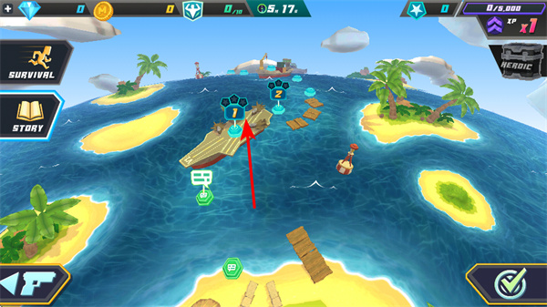 1、選擇游戲關(guān)卡,在地圖界面中選擇標(biāo)有1的關(guān)卡,進(jìn)入該關(guān)卡的射擊戰(zhàn)斗場景,開始闖關(guān)挑戰(zhàn)。