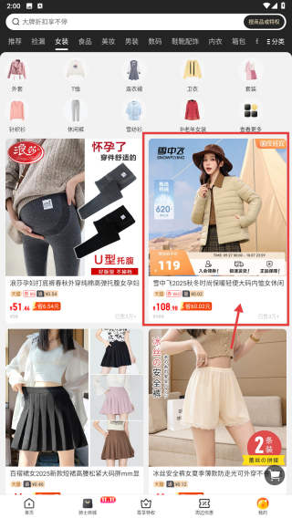 3、在女裝商品列表中,選擇雪中飛2025秋冬時(shí)尚保暖輕便大碼內(nèi)恤女休閑商品,點(diǎn)擊進(jìn)入詳情頁(yè)。
