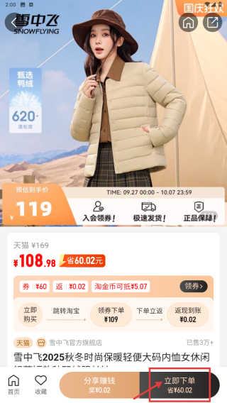 4、在商品詳情頁(yè),點(diǎn)擊立即下單按鈕,進(jìn)行商品購(gòu)買(mǎi)操作。