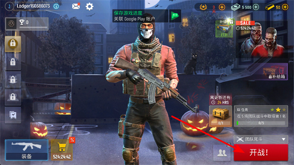 1、進入戰(zhàn)斗場景,點擊開戰(zhàn)按鈕,進入團隊死斗的射擊戰(zhàn)斗場景,開始參與對戰(zhàn)。