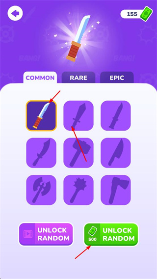 4、在武器界面,消耗金幣解鎖普通、稀有、史詩(shī)級(jí)武器,朝著擊敗更多敵人、通關(guān)更多關(guān)卡的目標(biāo)努力。