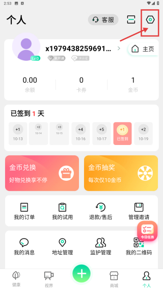 2、在個人中心頁面,點擊右上角設置圖標,進入系統(tǒng)設置界面。