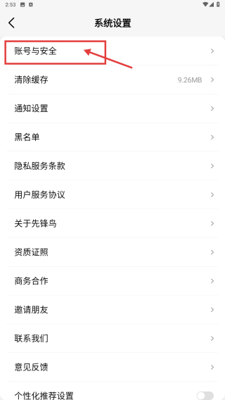 3、在系統(tǒng)設置界面,點擊賬號與安全選項,進入賬號與安全頁面。