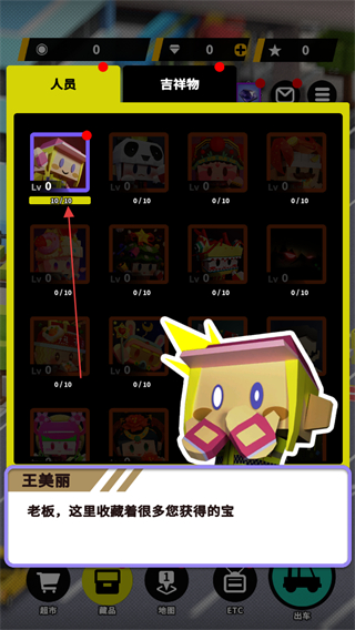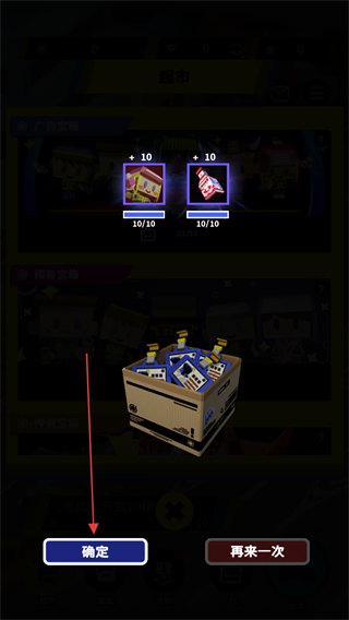 1、進(jìn)入游戲點(diǎn)擊超市,選擇箱子類道具,消耗一定資源打開箱子獲取物品。