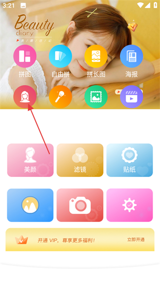 1、進(jìn)入美顏美妝,在首頁點(diǎn)擊美顏,進(jìn)入照片選擇頁面。