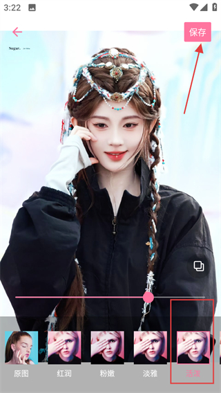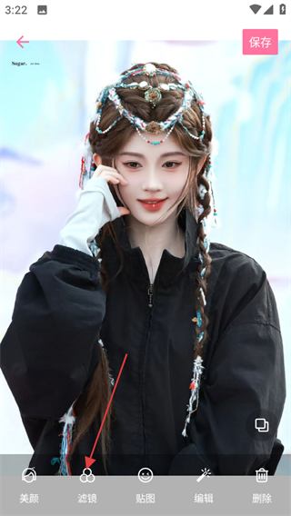 4、選好濾鏡后,點(diǎn)擊右上角保存,即可保存美顏后的照片。