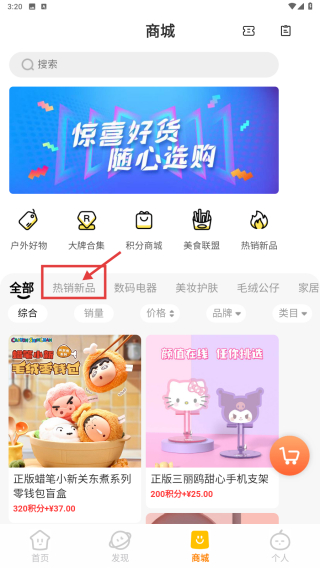 2、在商城頁面,點擊熱銷新品分類標簽,篩選熱銷新品類商品。