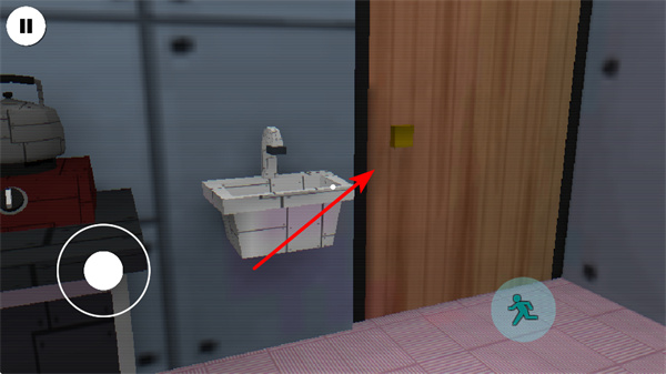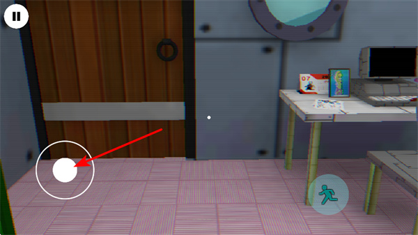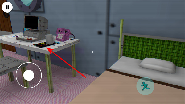 1、移動探索場景,通過左側的移動按鈕,控制角色在房間內(nèi)移動,探索不同區(qū)域,尋找解謎線索和道具。