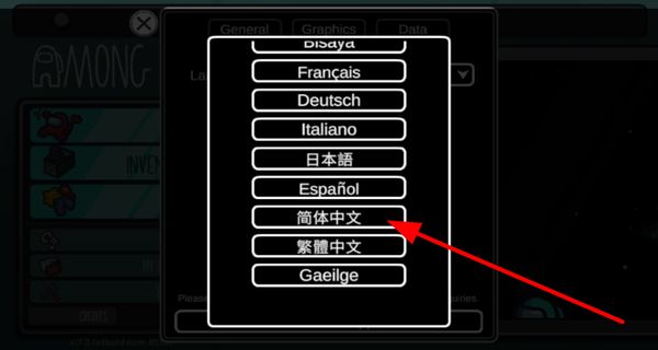 4、在展開的語言列表里,找到并點(diǎn)擊簡體中文選項(xiàng),即可將游戲語言設(shè)置為中文,方便游戲。