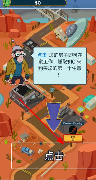 1、開局點擊房子,能在家工作賺10美元,有了錢就可以去購買第一個生意,開啟賺錢之路。
