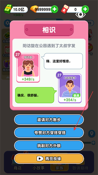 1、在相識界面,了解人物信息,點擊夸贊對方穿搭穿搭增加好感度。