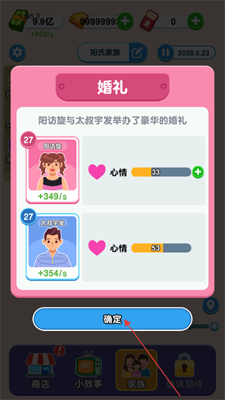 3、舉辦婚禮后,在婚禮界面確認婚禮結(jié)果,查看雙方心情等狀態(tài)變化。