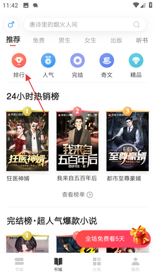 1、進(jìn)入網(wǎng)易云閱讀書城頁(yè)面,點(diǎn)擊排行,進(jìn)入排行頁(yè)面。