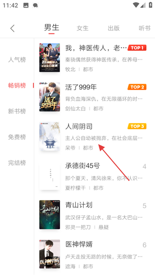 2、在排行頁(yè)面,選擇想看的小說,如人間陰司,進(jìn)入該小說詳情頁(yè)面。