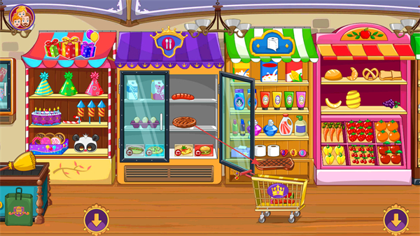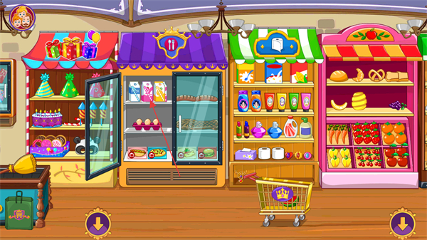 2、點擊冰柜等貨架打開柜門,露出里面的蛋糕、肉類等商品。