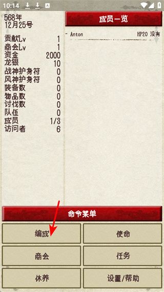 1、進入成員編成,點擊編成按鈕,進入成員編成界面,開始對隊伍成員進行配置和管理,優(yōu)化隊伍的戰(zhàn)斗或經(jīng)營能力。