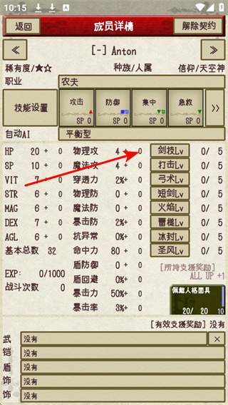 2、查看成員詳情,在成員詳情界面中,查看Anton的職業(yè)、技能、屬性等信息,了解成員的能力特點,為任務(wù)分配提供依據(jù)。