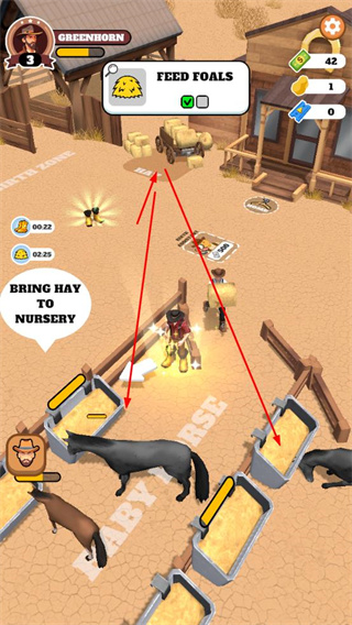 3、執(zhí)行FEED FOALS任務(wù),將干草投喂給小馬駒,保障馬匹成長(zhǎng),為后續(xù)經(jīng)營(yíng)奠定基礎(chǔ)。