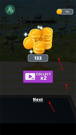3、飛行結(jié)束后收集金幣,可通過觀看廣告翻倍收益,積累金幣用于升級飛機或解鎖新功能。