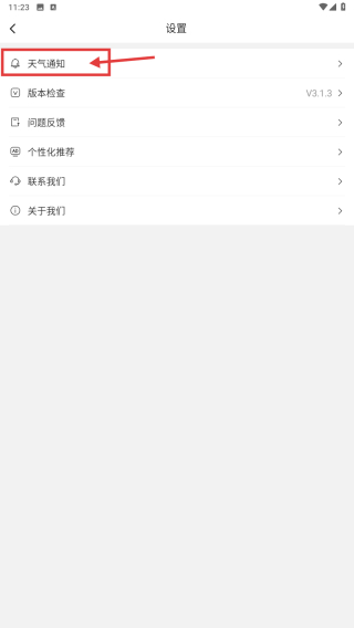 3、在設(shè)置界面,點(diǎn)擊天氣通知選項(xiàng),進(jìn)入早晚天氣提醒頁面。